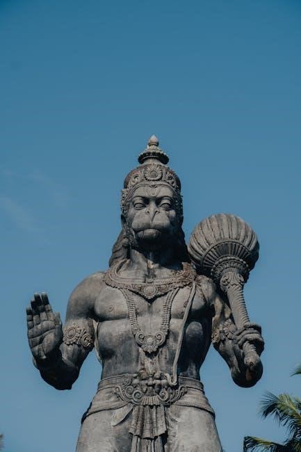 The Hanuman Chalisa’s significance stems from its embodiment of devotion‚ strength‚ and selfless service – qualities deeply valued in Hinduism. Recitation is believed to invoke Hanuman’s blessings‚ offering protection from negative energies‚ overcoming obstacles‚ and fostering inner peace.